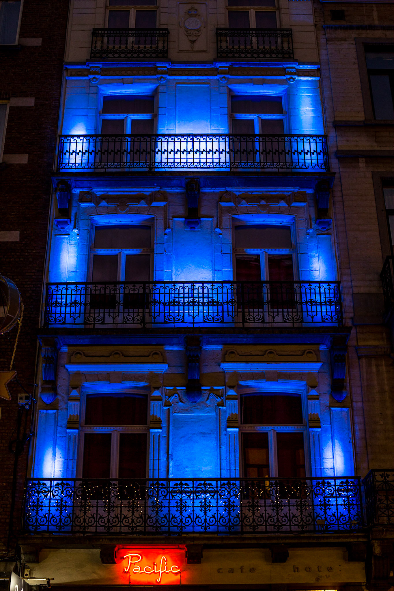 Looking at a building through artworks at Grand Canal Quay, Dublin